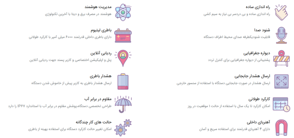 ردیاب مگنتی اسمارتک VT-03 دارای مگنت های قدرتمند و همچنین هوشمند در صورت قطع شدن میباشد و با انتخاب نوع عملکرد در دو حالت ارسال موقعیت هر 10 ثانیه یکبار و یا هر 24 ساعت یکبار این امکان را میدهد تا بین 20 تا 360 روز با هر بار شارژ برای کاربر بازدهی داشته باشد. این دستگاه به عنوان ردیاب شخصی نیز کاربرد دارد.